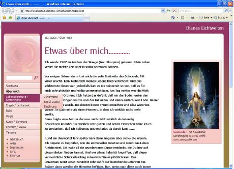 Beispielgebende Seite im Full-Screen-Template-Design für Lebensberatung, Kartenlegen und Engelenergien